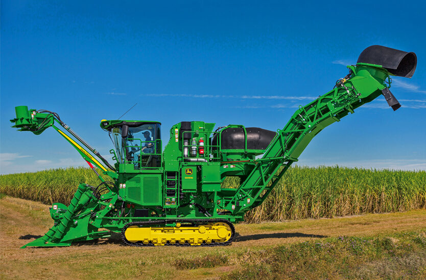 Las cosechadoras modelo CH570 de un surco de John Deere, pioneras en Guatemala, gracias a la confianza, asesoramiento y servicio ofrecido a la industria azucarera para impulsar el desarrollo y la productividad para el sector.
